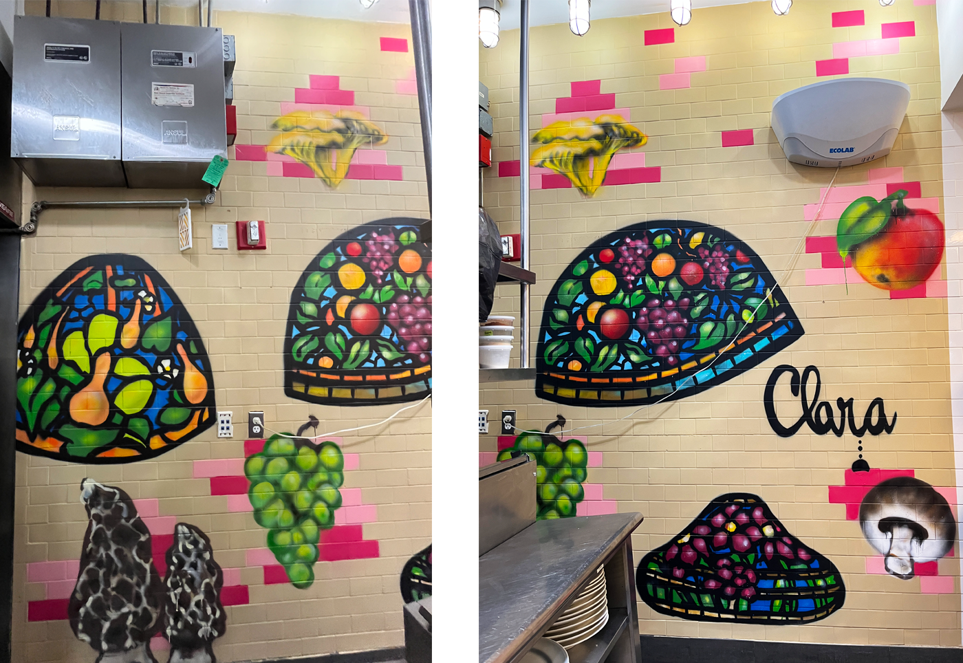 Mural inspired by food and the Tiffany lamps exhibition within the museum.