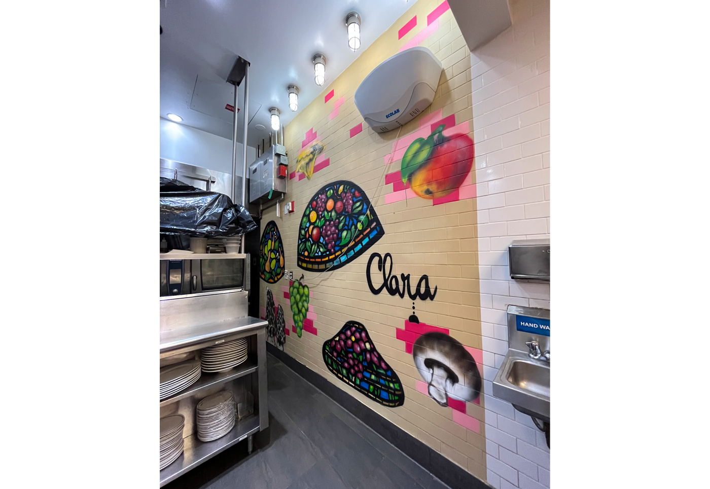 Custom graffiti mural with bold storytelling and design bridging food, hip hop and the Bronx.